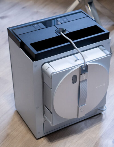 Die glatten Oberflächen des Roboters und der Station tragen ebenfalls dazu bei, dass sich Staub oder Spritzwasser leicht entfernen lassen. Ein kurzes Abwischen reicht in der Regel aus, um das Gerät sauber zu halten. Gleichzeitig sind die relevanten Komponenten so gestaltet, dass sie sich intuitiv erreichen lassen, ohne dass man lange suchen oder Teile umständlich demontieren muss. Auch im Detail wirkt das Konzept durchdacht. Verschleißteile lassen sich schnell wechseln, und insgesamt hält sich der Wartungsaufwand in einem überschaubaren Rahmen. Das passt gut zum Gesamteindruck des Geräts, das nicht nur bei der Reinigung selbst, sondern auch bei der Pflege möglichst wenig Aufwand verursachen soll.