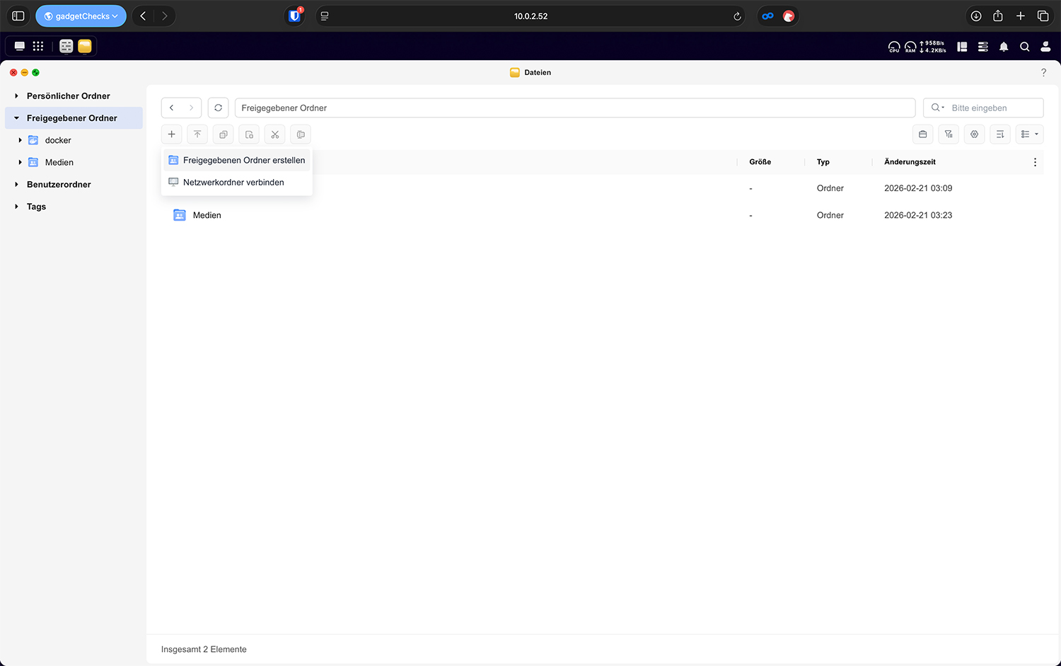 1. Gemeinsame Freigaben (z. B. „Dokumente“, „Medien“, „Projekte“)