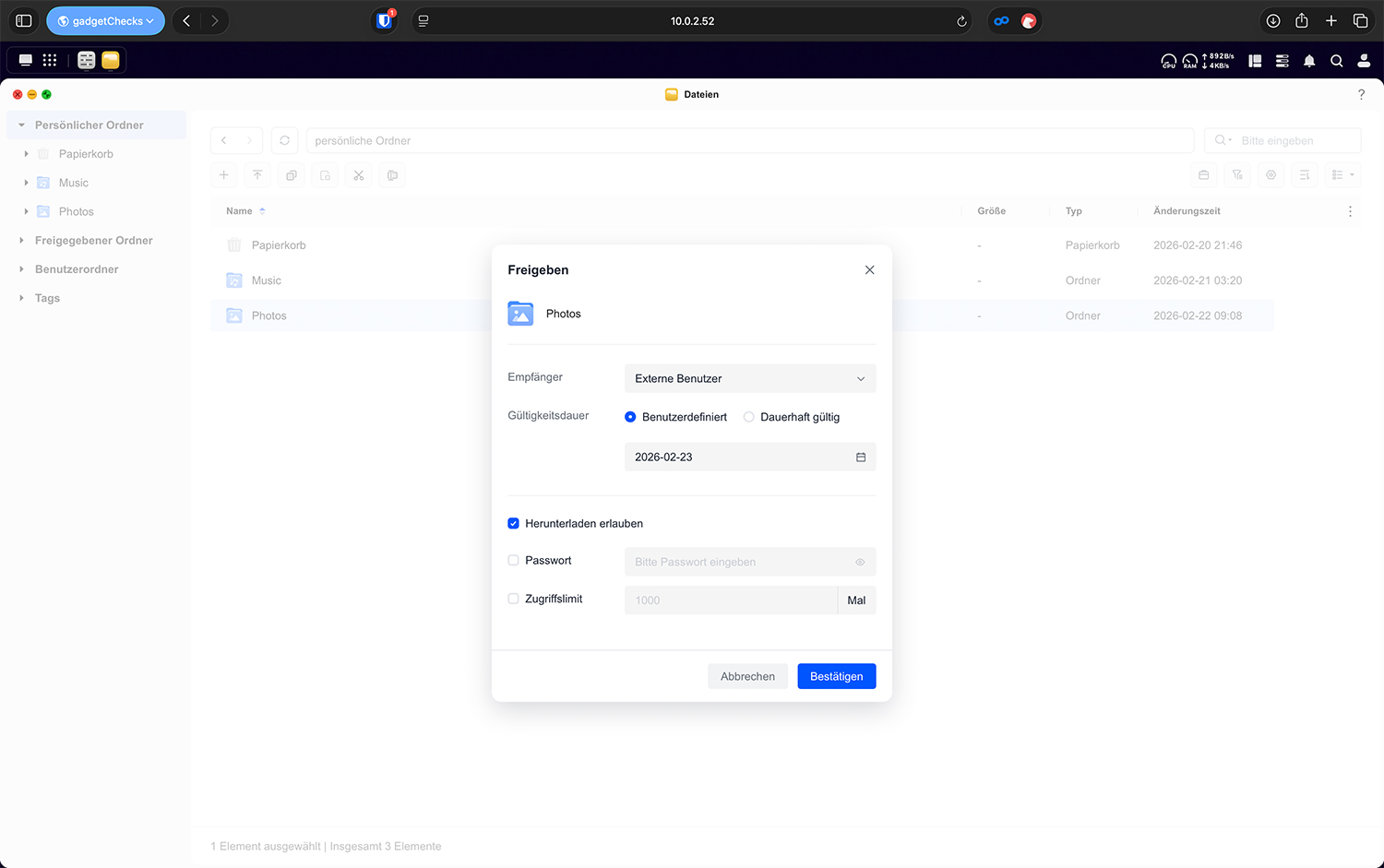 In vielen NAS-Systemen ist es möglich, einen einzelnen Ordner aus dem persönlichen Bereich für andere Benutzer freizugeben.