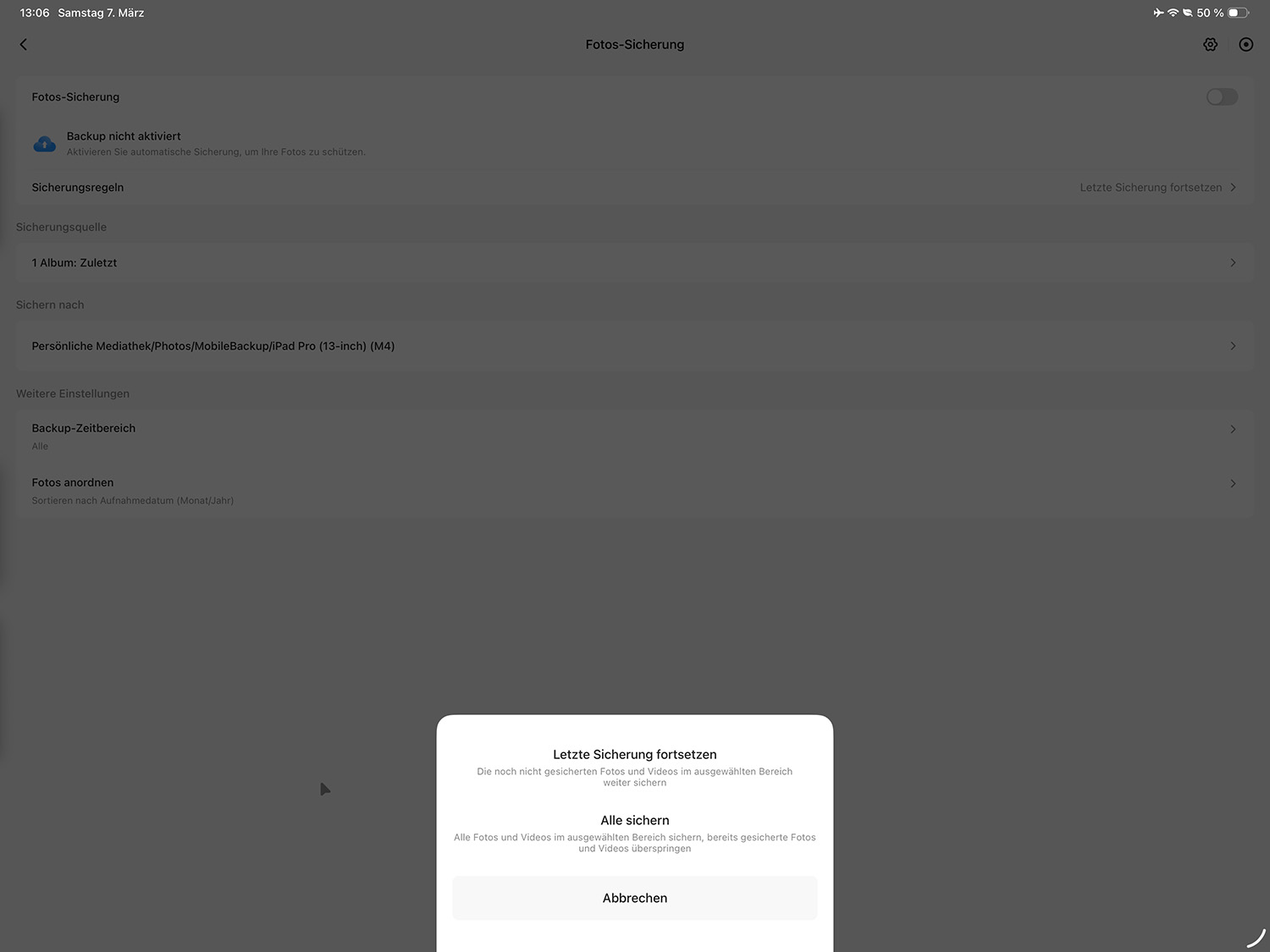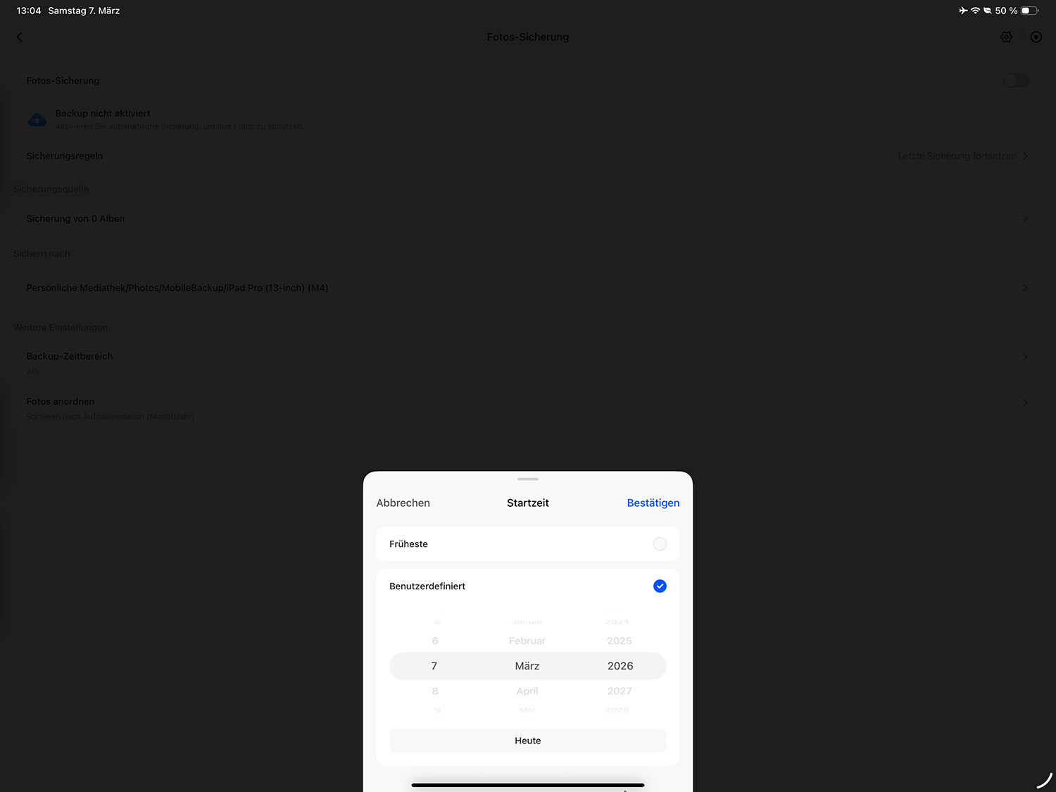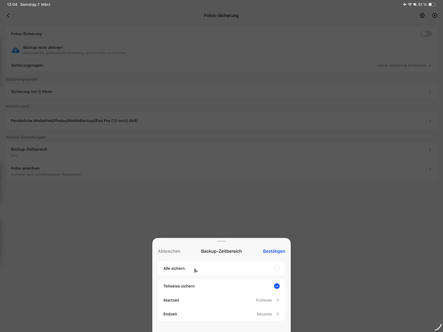 Im Bereich Backup-Zeitbereich kann festgelegt werden, welche Fotos gesichert werden sollen.